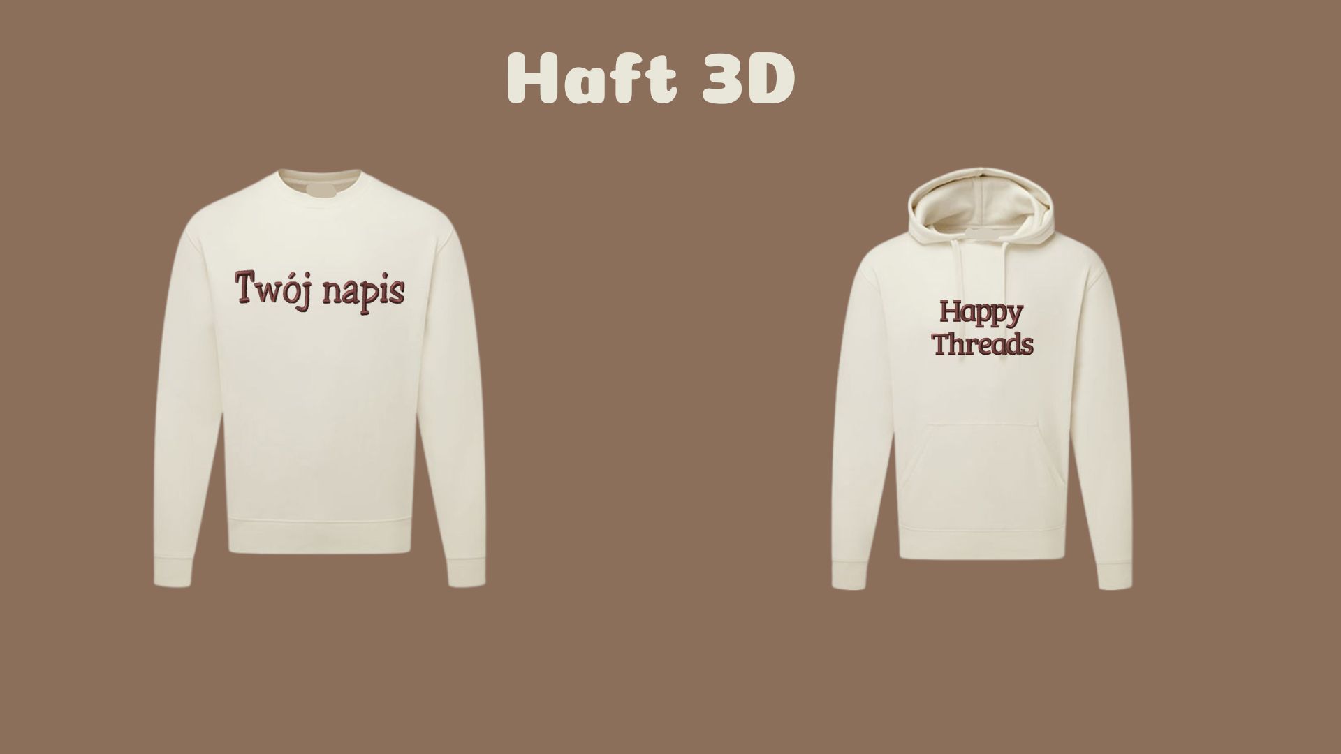 Rozumiemy, że można czuć wątpliwości co do efektu haftu, czy będzie się podobał. Z naszej strony robimy wszystko co w naszej mocy, by rozbić te wątpliwości. Wysyłamy wizualizację do akceptacji przy całkowicie personalizowanych produktach, może ona się nieco różnić od efektu końcowego, dlatego skrupulatnie prowadzimy nasze social media, gdzie to udostępniamy wiele naszych realizacji, aby każdy mógł poznać kolory ubrań, nici czy style czcionek.