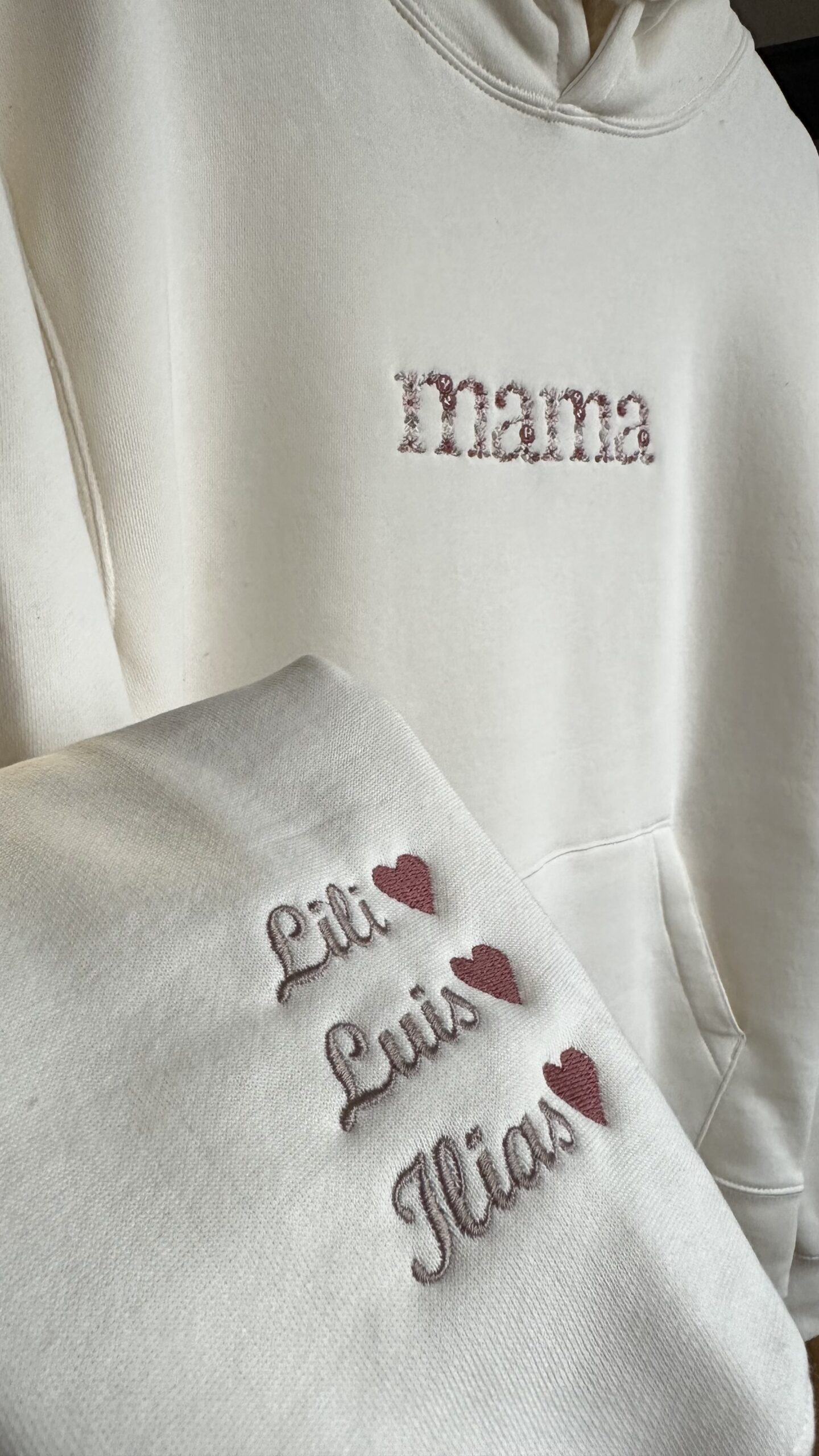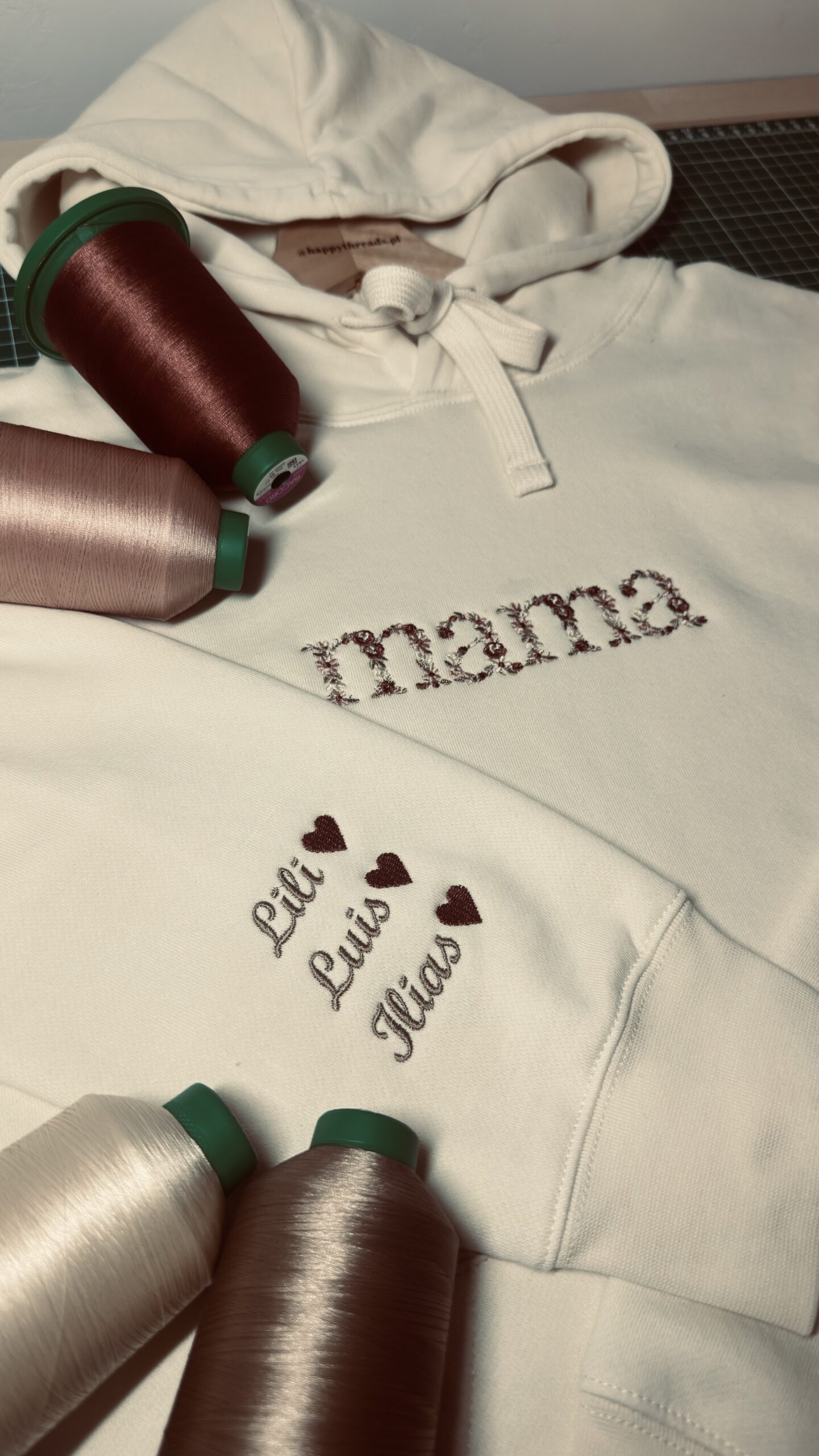 Haft wykonywany jest metodą klasyczną, natomiast jest on w motywie kwiecistym, oznacza to, że każda literka zbudowana jest z małych kwiatów. Oferujemy domyślne, wyselekcjonowane przez nas kolory kwiatów, niemniej jeśli chcesz je zmienić, istnieje możliwość pełnej personalizacji. Możesz dobrać kolory nici do swojego stylu, a także dodać wyjątkowy akcent np. napis est. lub since z rokiem, imię lub inicjał dziecka na rękawku, co tylko zapragniesz, aby koszulka była w pełni Twoja — wystarczy wpisać te informacje w uwagach do zamówienia.